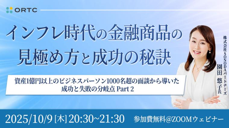 [10月9日オンライン]【参加費0円】インフレ時代の金融商品の見極め方と成功の秘訣 ― 資産1億円以上のビジネスパーソン1000名超の面談から導いた 成功と失敗の分岐点 Part 2 ―